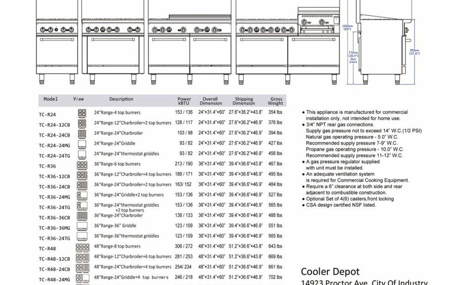 3/4" NPT rear gas connections