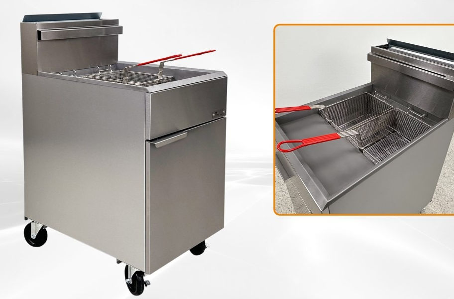 Oil cooling zone in the bottom of the tank captures food particles and extends oil life.