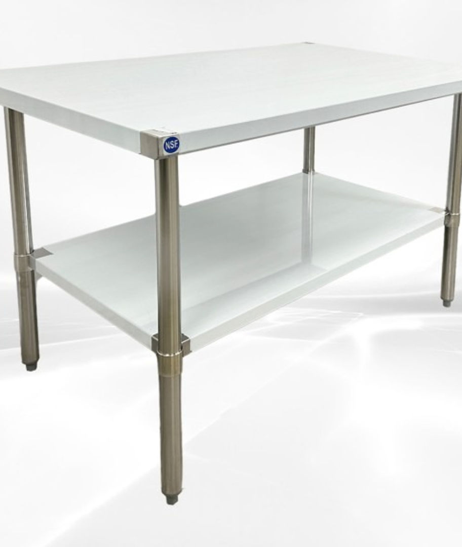 Food safe material: Easy to clean and sterilize, metal prep station tables are superior to wood or glass. This stainless steel table has been certified by NSF.