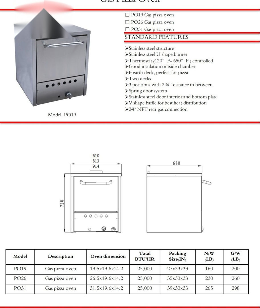 3/4" NPT rear gas connection