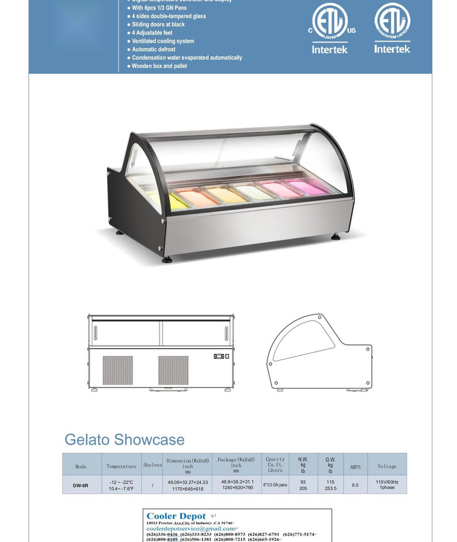 NSF Gelato case Dipping Freezer Ice Cream Cabinet STGCD-DW-6R