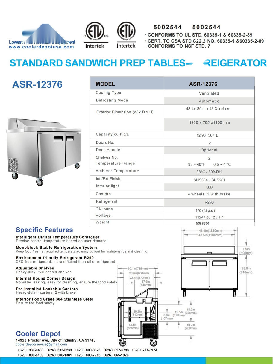 NSF Sandwich Prep Table 48 inches STGCD-ASR-12376